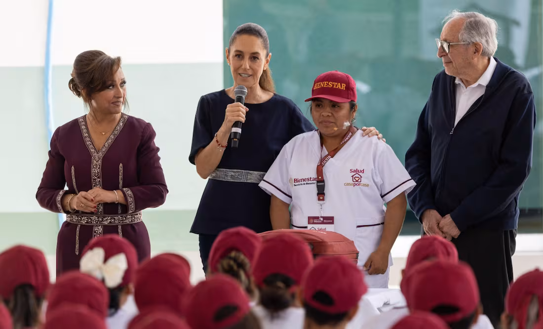 Acompañaron a la Presidenta de México, el secretario técnico de la Presidencia de la República y director general de Programas para el Bienestar, Carlos Torres Rosas; la subsecretaria de Egresos, Bertha Gómez Castro; y la facilitadora de la salud, Esthela Guzmán Cruz, quien realizó una breve explicación de los insumos médicos que contiene el maletín que se otorgó a las enfermeras, enfermeros, médicas y médicos del programa.