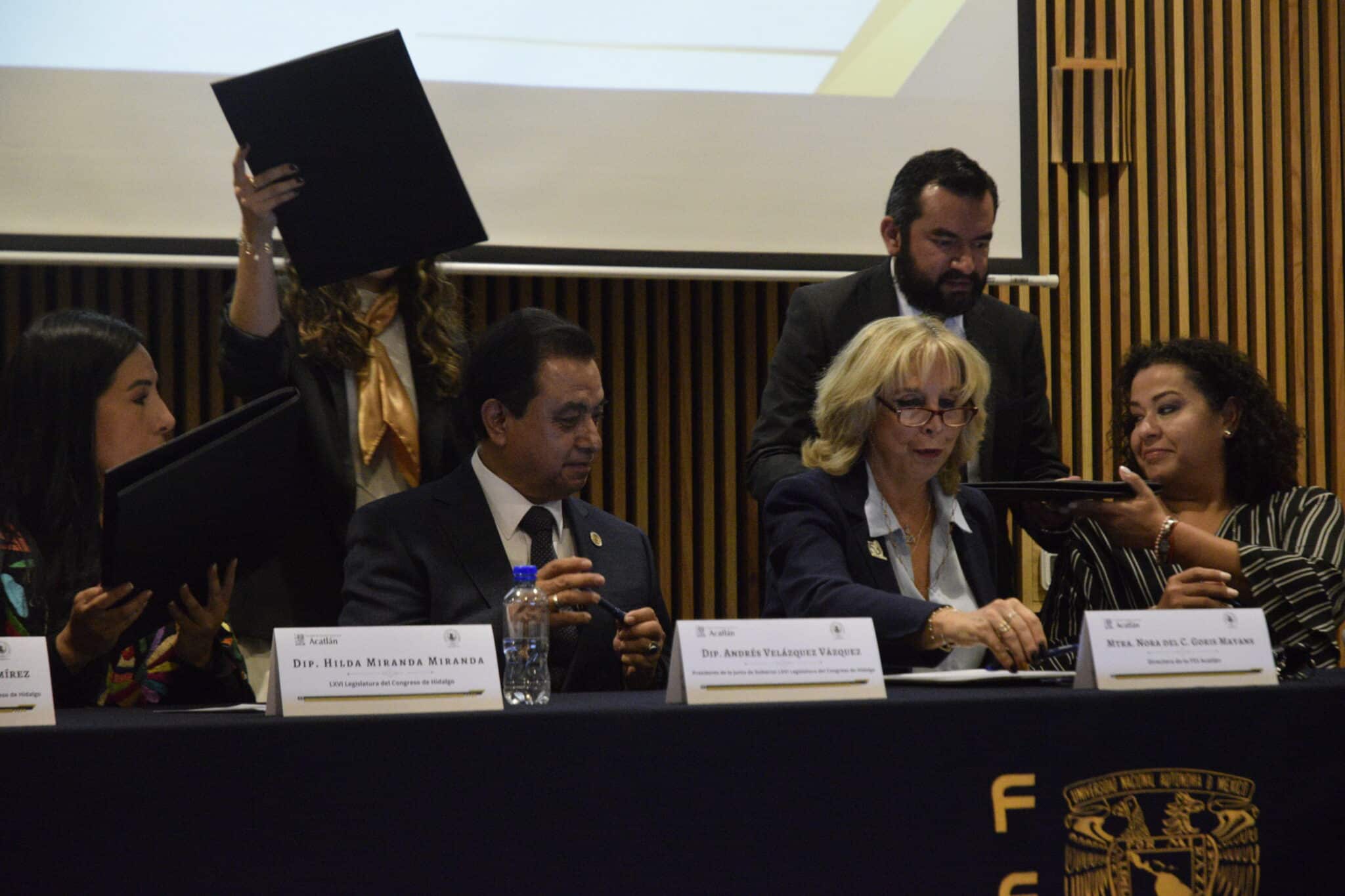 El Congreso del Estado Libre y Soberano de Hidalgo y la Facultad de Estudios Superiores (FES) Acatlán de la Universidad Nacional Autónoma de México (UNAM) firmaron una carta compromiso, con el objetivo de sumar esfuerzos y recursos en la realización de actividades conjuntas para la capacitación y actualización a servidores públicos.
