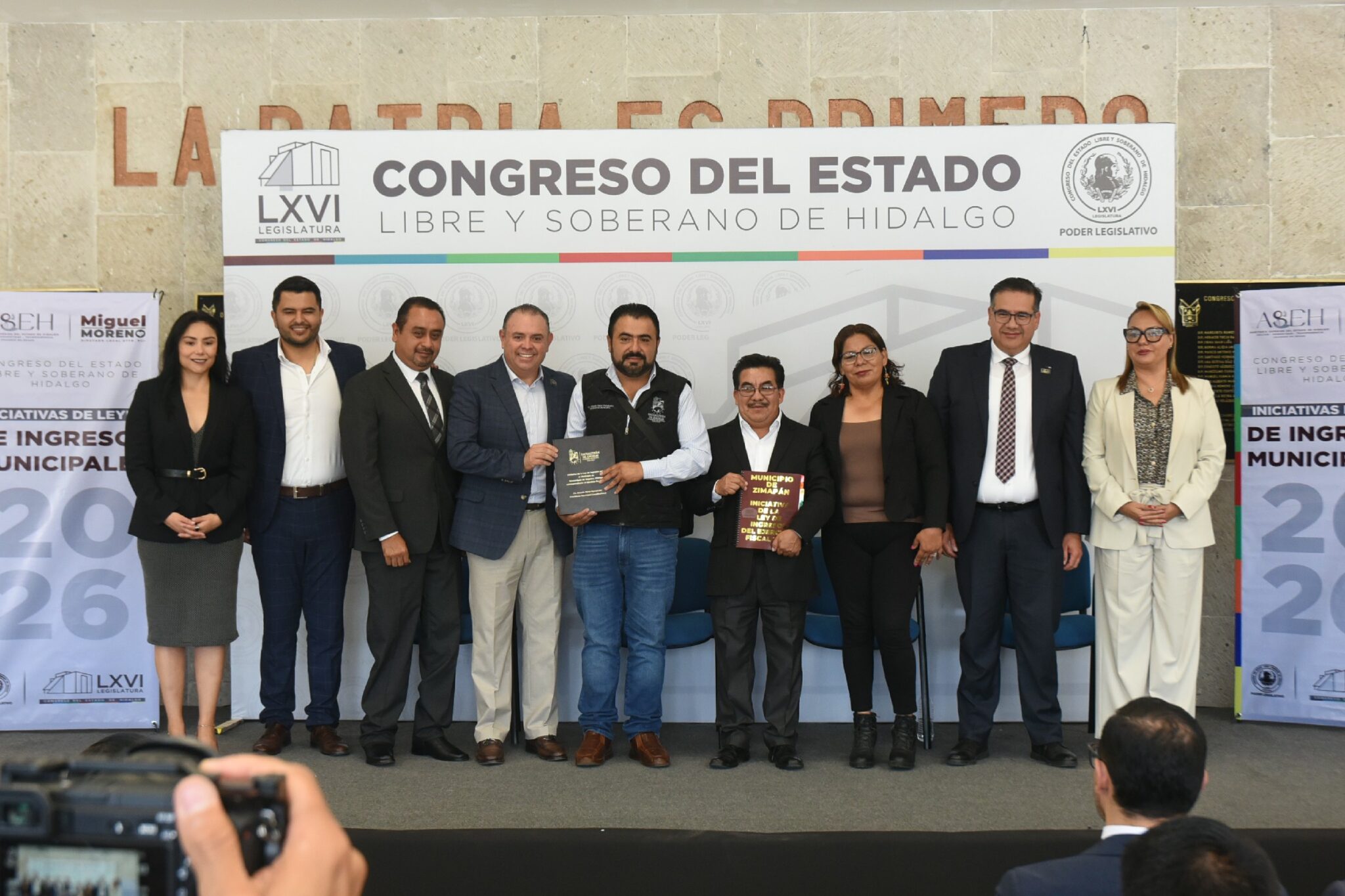 De manera simbólica, el Congreso del Estado Libre y Soberano de Hidalgo recibió de presidentas y presidentes municipales sus Iniciativas de Leyes de Ingresos Municipales del Ejercicio Fiscal 2026 y acuerdos tarifarios de organismos operadores de agua, ejercicio fundamental para el fortalecimiento de la transparencia y la correcta planeación financiera de los ayuntamientos.