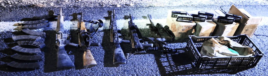 -En Culiacán, elementos del Ejército Mexicano aseguraron dos armas largas, 55 cargadores, 400 cartuchos, equipo táctico, siete radios portátiles y dos vehículos con reporte de robo.