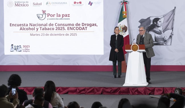 La Presidenta de México, Claudia Sheinbaum Pardo, resaltó que los resultados de la Encuesta Nacional de Consumo de Drogas, Alcohol y Tabaco (ENCODAT) 2025, que realizó el Instituto Nacional de Salud Pública (INSP) de la Secretaría de Salud, demuestran que es exitosa la campaña preventiva, nacional y permanente Aléjate de las drogas. El fentanilo te mata, ya que el consumo no médico de este opioide disminuyó de 0.2 a 0.1 por ciento, mientras que el uso experimental de drogas ilegales en adolescentes se redujo del 6.2 por ciento en 2016 a 4.1 por ciento en 2025.