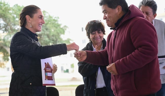 En Reynosa, Tamaulipas, la Presidenta de México, Claudia Sheinbaum Pardo, encabezó la entrega de 44 viviendas del desarrollo Florencia a derechohabientes del Instituto del Fondo Nacional de la Vivienda para los Trabajadores (Infonavit), como parte del programa Vivienda para el Bienestar.
